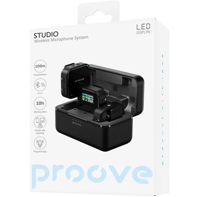 Bring studio-grade sound wherever you go with the Proove Studio Wireless Microphone System. Designed for creators, performers, and professionals, this all-in-one mic system delivers crystal-clear audio with flexible connectivity and powerful battery life.